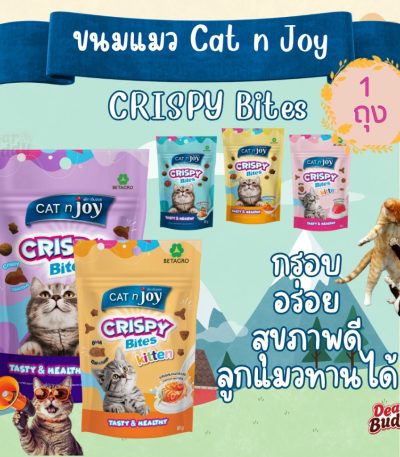 Price range: ฿69.00 through ฿279.00CAT n joy Crispy Bites (60g) ขนมแมวกรุบกรอบ แคทเอ็นจอย บำรุงขน มีสูตรลูกแมว รสทูน่า แซลมอน ซีฟู้ด