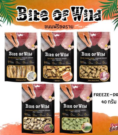 Price range: ฿38.00 through ฿39.00Bite of Wild ฟรีซดราย Freeze Dried 40 กรัม ขนมหมา ขนมแมว ทำจากเนื้อสัตว์ 100% อกไก่ แซลมอน และปลาไข่
