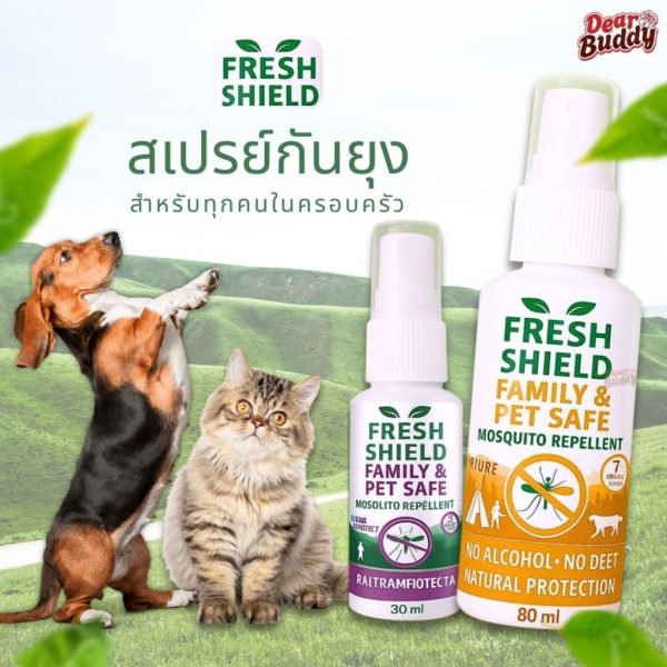 Price range: ฿205.00 through ฿543.00สเปรย์กันยุง Fresh Shield สำหรับคนและสัตว์เลี้ยง อ่อนโยน ปลอดภัย ไม่มีแอลกอฮอล์ ปราศจากสาร DEET ปกป้องยาวนาน 7 ชั่งโมง