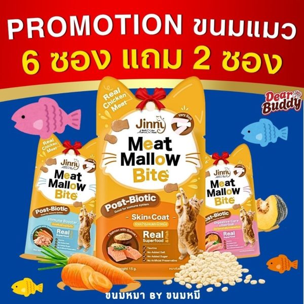 6 แถม 2 ซอง Jinny Meat Mallow Bite เคี้ยวเพลิน พอดีคำ ดีต่อสุขภาพ เพราะอุดมไปด้วยคุณประโยชน์ของSuperfood จากผักและผลไม้