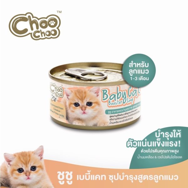 ChooChoo Baby Cat ชูชู อาหารเสริมซุปบำรุงสูตรลูกแมว1กระป๋อง 80 กรัม อาหารลูกแมว นมลูกแมว (เหมาะกับลูกแมว1-3เดือน)