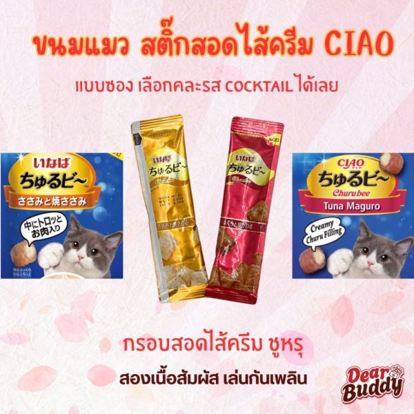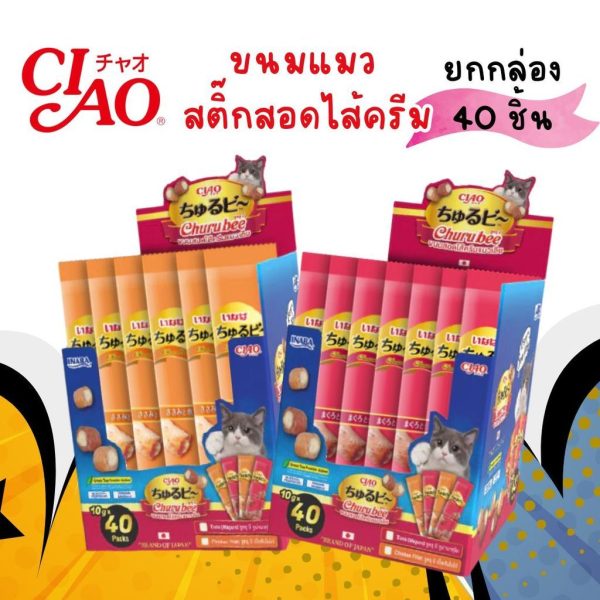 CIAO Churu bee ชูหรุ บี ขนมแมวสอดไส้ครีม รสทูน่าเเละเนื้อสันในไก่ 10 กรัม x 40 ชิ้น/กล่อง (1 กล่อง)