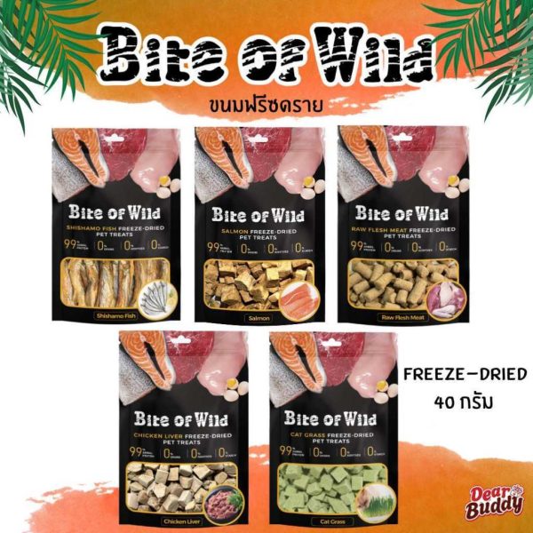Bite of Wild ฟรีซดราย Freeze Dried 40 กรัม ขนมหมา ขนมแมว ทำจากเนื้อสัตว์ 100% อกไก่ แซลมอน และปลาไข่