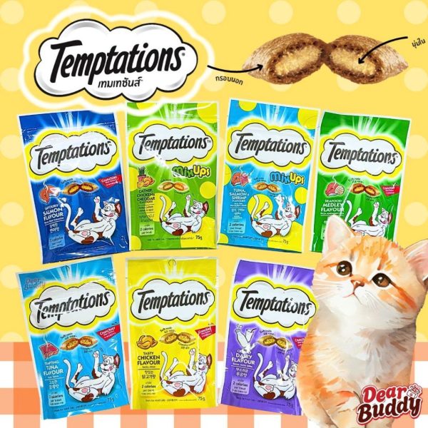 Temptations Crunchy Cat Snack เทมเทชันส์ ขนมแมวสอดไส้ กรอบนอกนุ่มใน บรรจุ 75 กรัม
