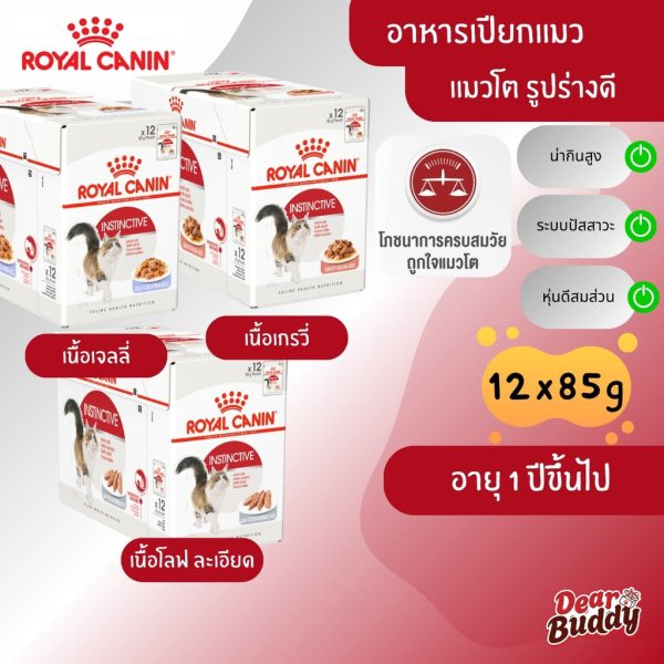 Royal Canin Instinctive Pouch โรยัล คานิน อาหารเปียก แมวโต อายุ 1 ปีขึ้นไป (กล่อง 12 ซอง) สูตรความน่ากินสูง รูปร่างดี