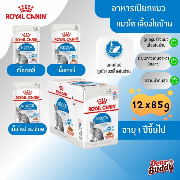 Royal Canin Indoor Pouch 12 ซอง (โรยัล คานิน) อาหารเปียกสำหรับแมวโตเลี้ยงในบ้าน อายุ 1 ปีขึ้นไป