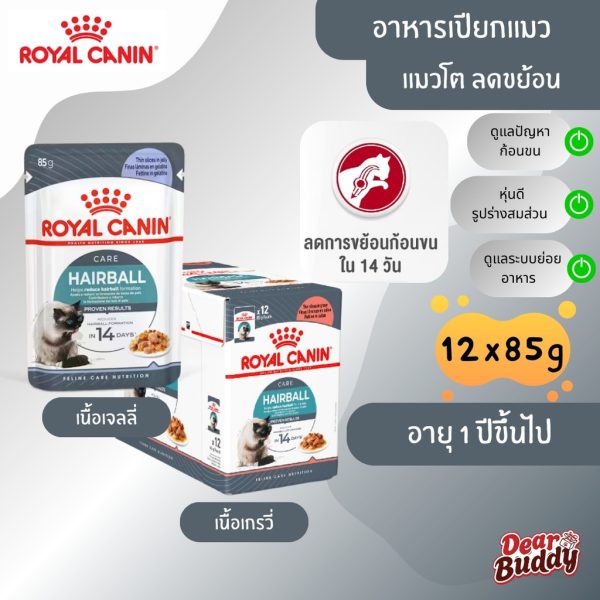 Royal Canin Hairball Care (โรยัล คานิน) อาหารเปียกสำหรับแมวโต อายุ 1 ปีขึ้นไป สูตรดูแลปัญหาก้อนขน แบ่งขาย 1 ซอง