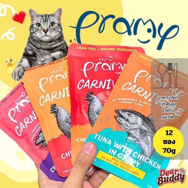 ยกกล่อง 12 ซอง Pramy Carnivore สำหรับน้องแมว 2 เดือนขึ้นไป พรามี่ คาร์นิวอร์ อาหารเปียก High Protein