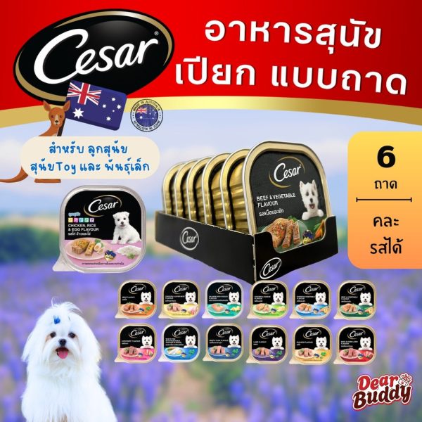 Cesar (ซีซาร์) อาหารเปียกสุนัข แบบถาด 100g (6ถาด) อาหารหมา เกรดพรีเมียม นำเข้าจากออสเตรเลีย มีหลายรส