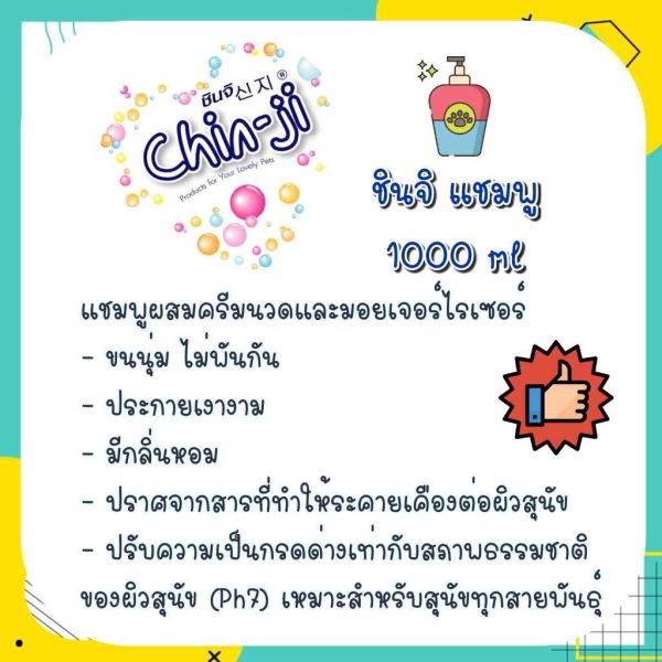 Chin ji ชินจิ แชมพูสุนัข สูตร 2 in 1 แชมพูผสมครีมนวดเข้มข้น 1000 ml แชมพูสุนัขหอมๆ แชมพูอาบน้ำหมา