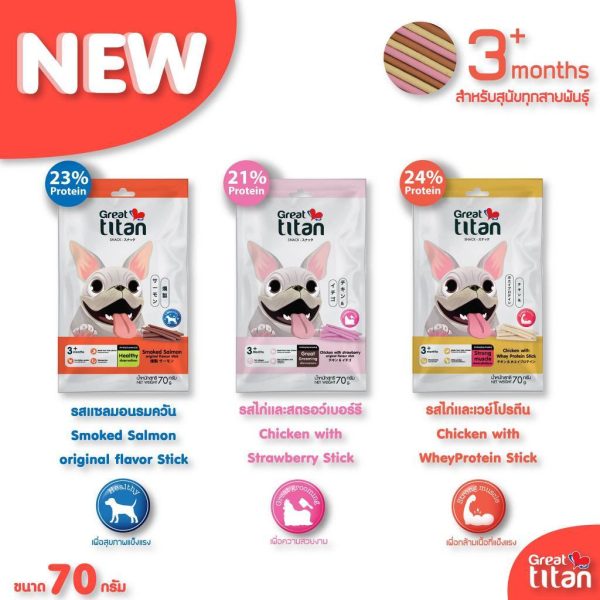 **ราคาส่งยกกล่อง** ล้อตใหม่ ขนมสุนัข Great titan snack ขนสวยสุขภาพดี โปรตีนย่อยง่าย บำรุงกระดูกและข้อต่อ