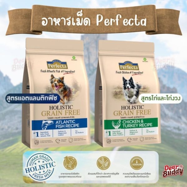 Perfecta Holistic Grain Free อาหารสุนัข เกรดพรีเมียม ไม่มีธัญพืช สูตรไก่ / สูตรปลา (อายุ 1 ปีขึ้นไป)