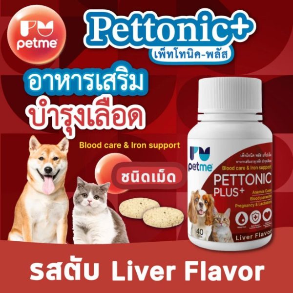 Pettonic Petme อาหารเสริม วิตามินบำรุงเลือด ชนิดเม็ด รสตับ ทานง่าย สำหรับสุนัขทุกสายพันธุ์ (40 เม็ด/ กระปุก)