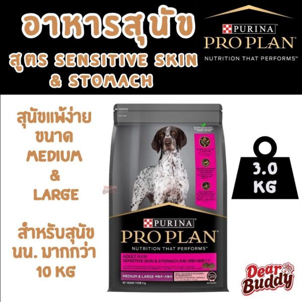 Pro Plan (โปรแพลน) อาหารสุนัขพันธุ์กลาง-ใหญ่ สูตรแพ้ง่าย บำรุงผิวหนังและขน สูตรปลาแซลมอน 3kg