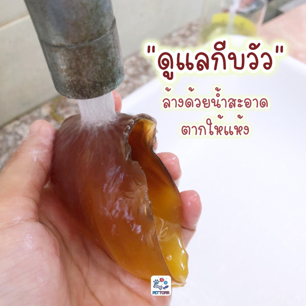 กีบวัวหรือเล็บวัวตากแห้งมีกลิ่นเฉพาะที่สุนัขชื่นชอบ สุนัขจะได้รับความสนุกสนาน ออกกำลังกาย สุขภาพแข็งแรง เพลิดเพลิน ฝึกการกัดแทะ มีสมาธิและลดการแทะทำลายสิ่งของ สุนัขสามารถขบแทะกีบวัวและหากสุนัขเลิกแทะสามารถนำไปล้างด้วยน้ำสะอาดและตากให้แห้งได้ค่ะ หวังว่าน้องๆจะชอบแทะกีบวัวนะคะ