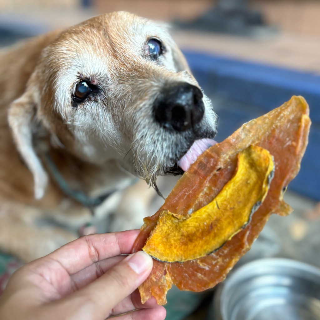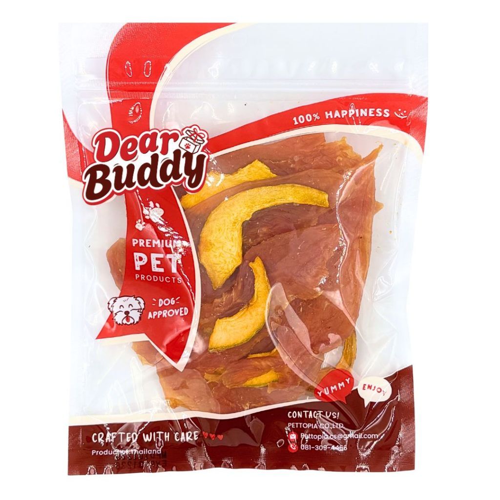 ขนมสุนัข สันในไก่หน้าฟักทองอบแห้ง 200 กรัม ขนมหมา ไก่อบแห้ง สันในไก่อบแห้ง