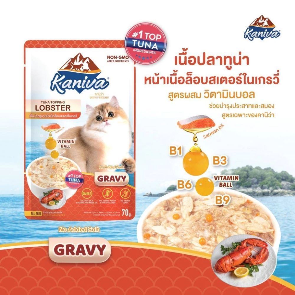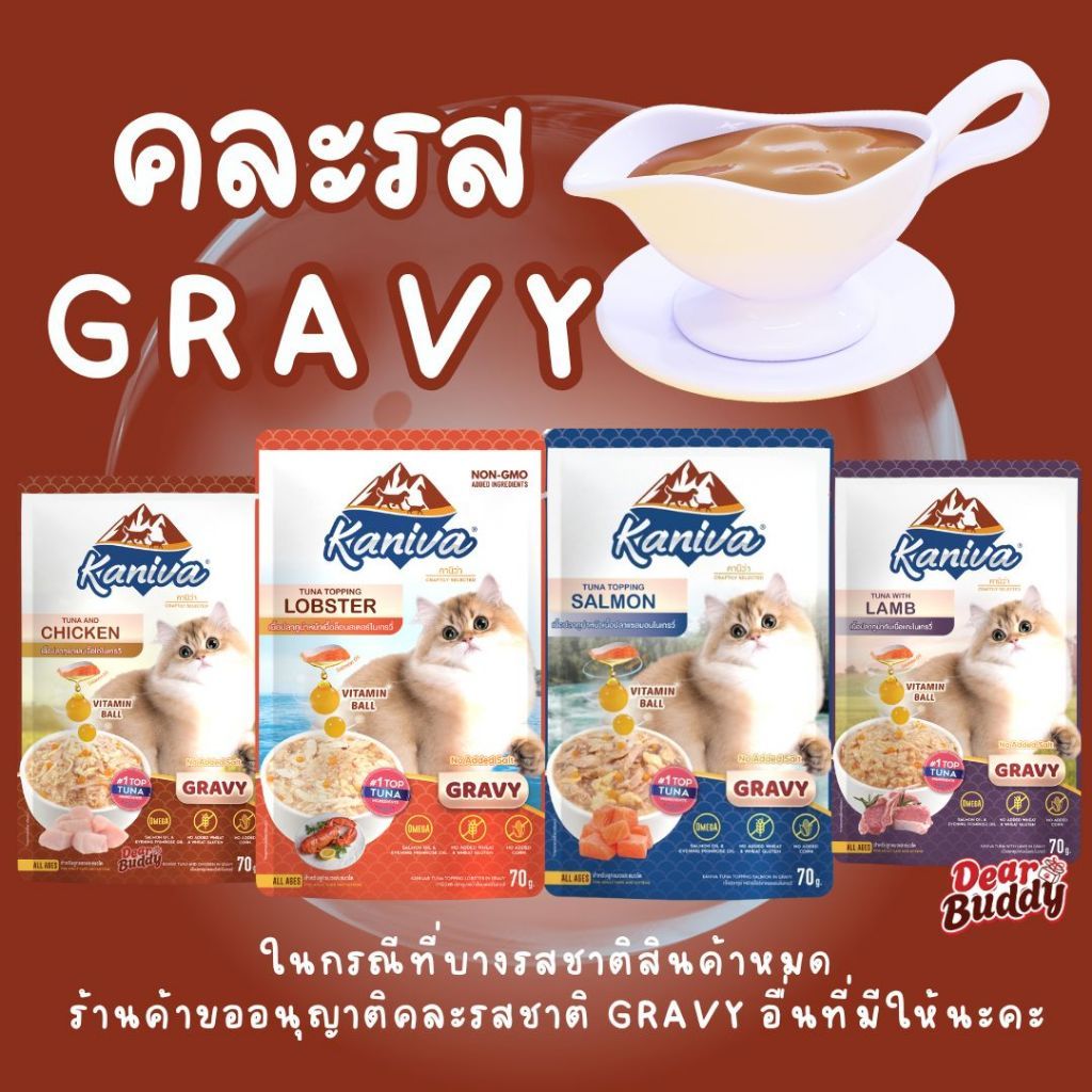 คละรสชาติ GRAVY สำหรับน้องแมวอายุ 4 เดือนขึ้นไป Kaniva อาหารเปียกแมว ยกกล่อง 12 ซอง อาหารแมวคานิว่า เนื้อปลาทูน่าเน้นๆ