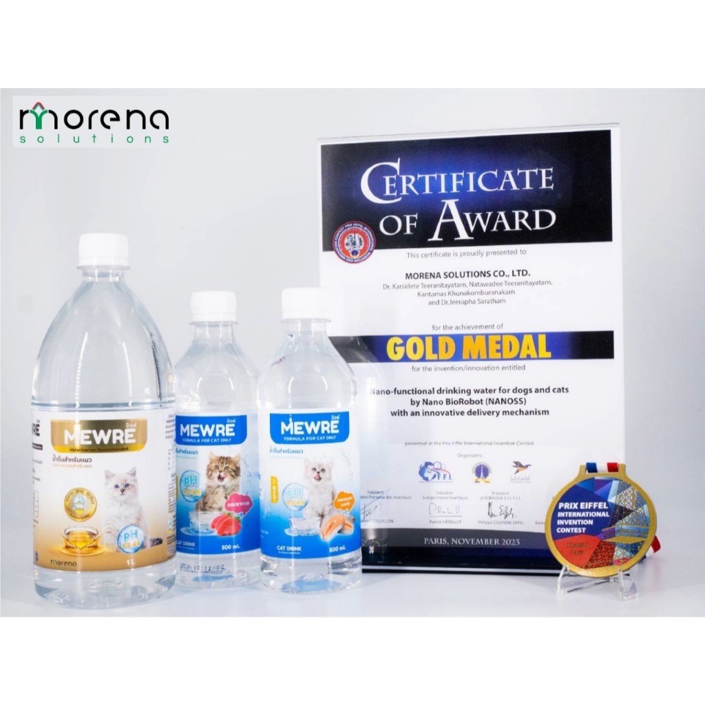 น้ำดื่มมิวเร่ น้ำดื่มสำหรับแมวโดยเฉพาะ มีการปรับค่า pH ให้เหมาะสมกับน้องแมว มีแร่ธาตุที่ดีต่อแมว