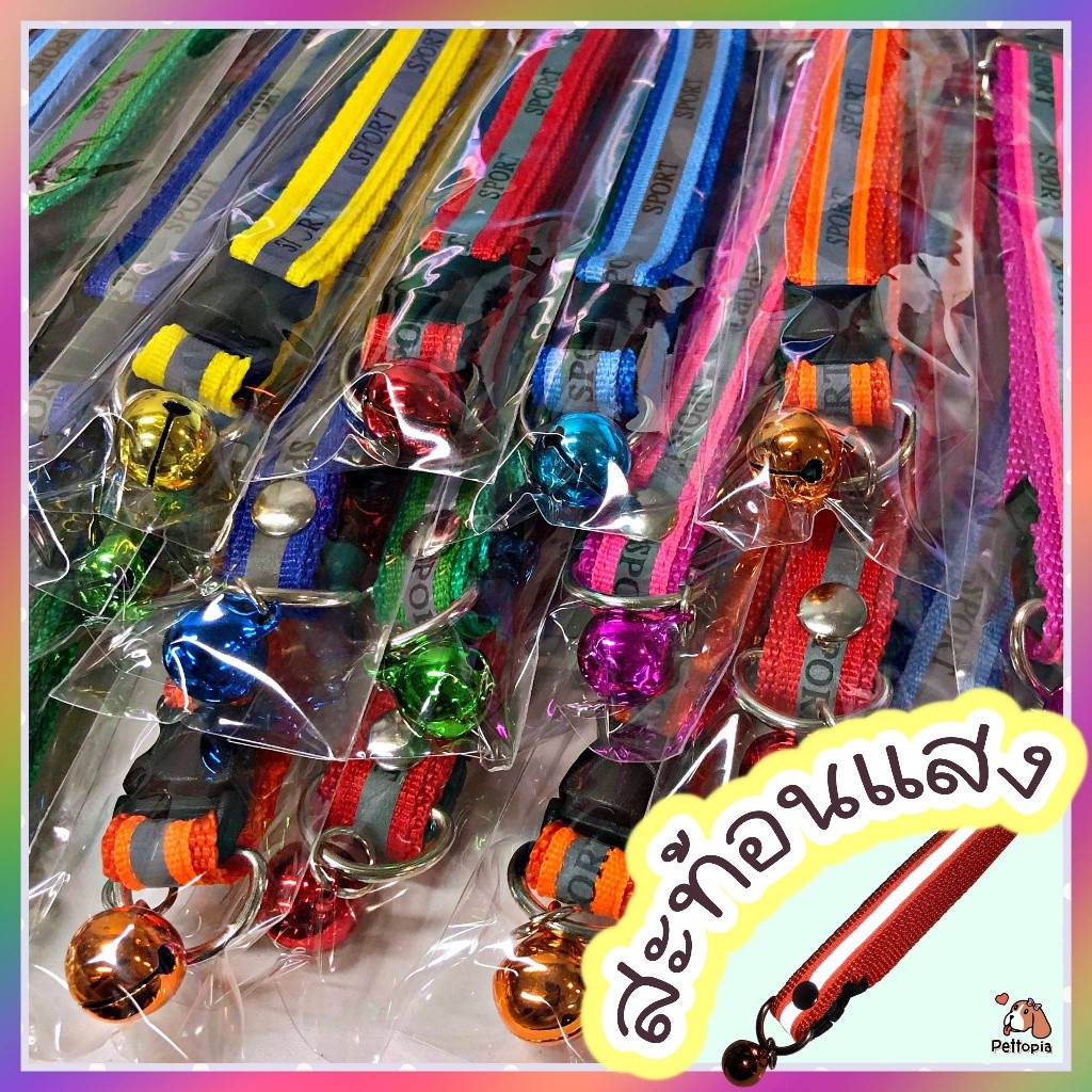 ปลอกคอสุนัข ปลอกคอแมว ปลอกคอสะท้อนแสง ปรับความยาว 20-35 ซม. ปลอกคอน่ารัก ปลอกคอสีสันสดใส