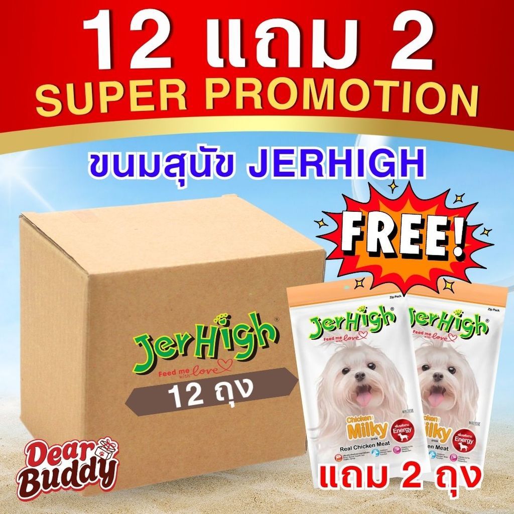ยกกล่อง 12 แถม 2 ถุง ขนมสุนัข Jerhigh stick ขนาด 50-60 กรัม
