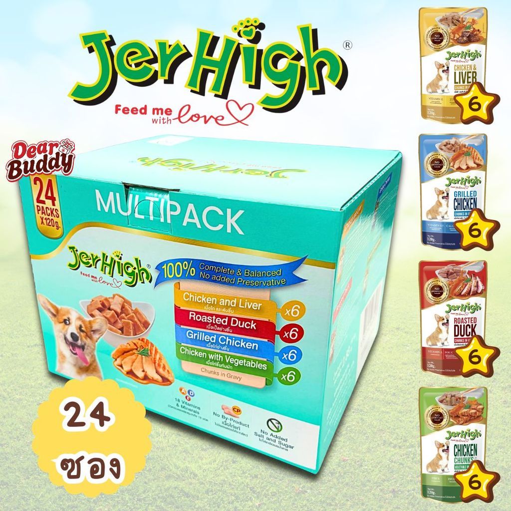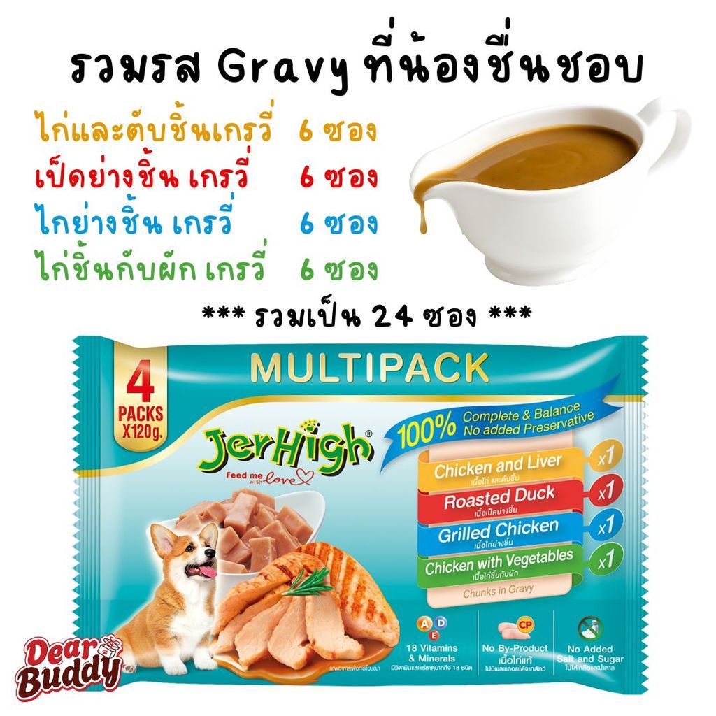 ยกกล่อง 24 ซอง รวมสูตร Gravy อาหารเปียก Jerhigh Multipack เจอร์ไฮ มัลติแพ็ค เพาซ์ อิน เกรวี่