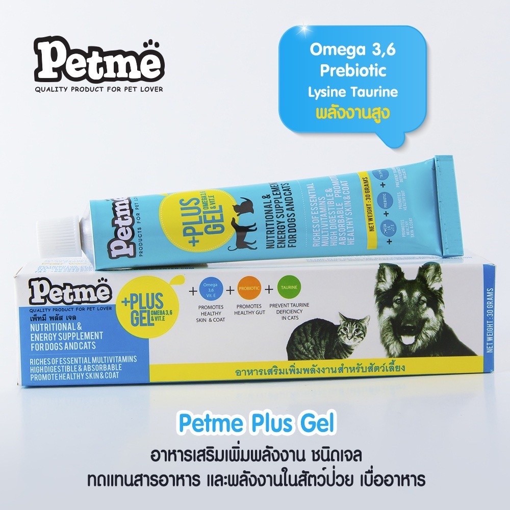 ราคาส่ง 15 หลอด Petme Plus Gel เพ็ทมี พลัส เจล 30 กรัม อาหารเสริมเพิ่มพลังงาน สำหรับสัตว์เลี้ยง