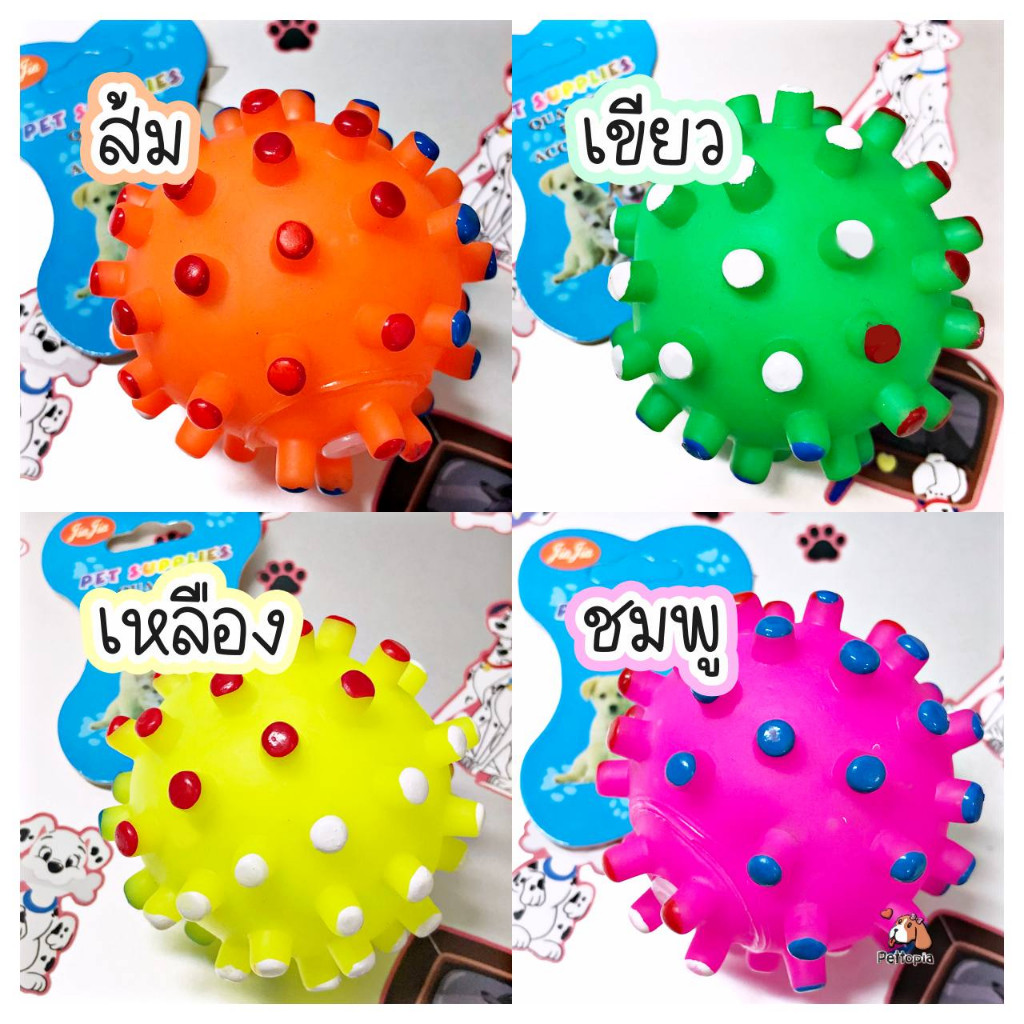 ของเล่นสำหรับสุนัขและเเมว เป็นลูกบอลยาง บีบเเล้วมีเสียงดัง