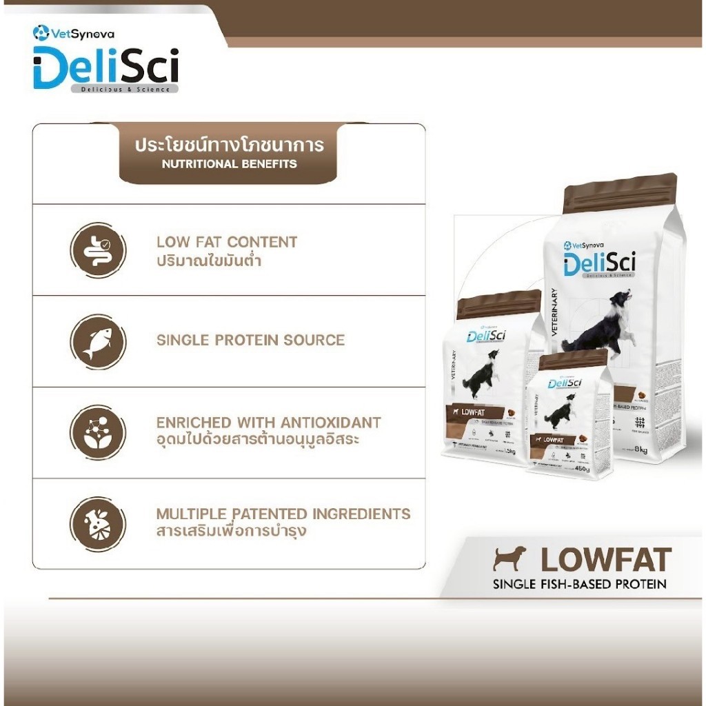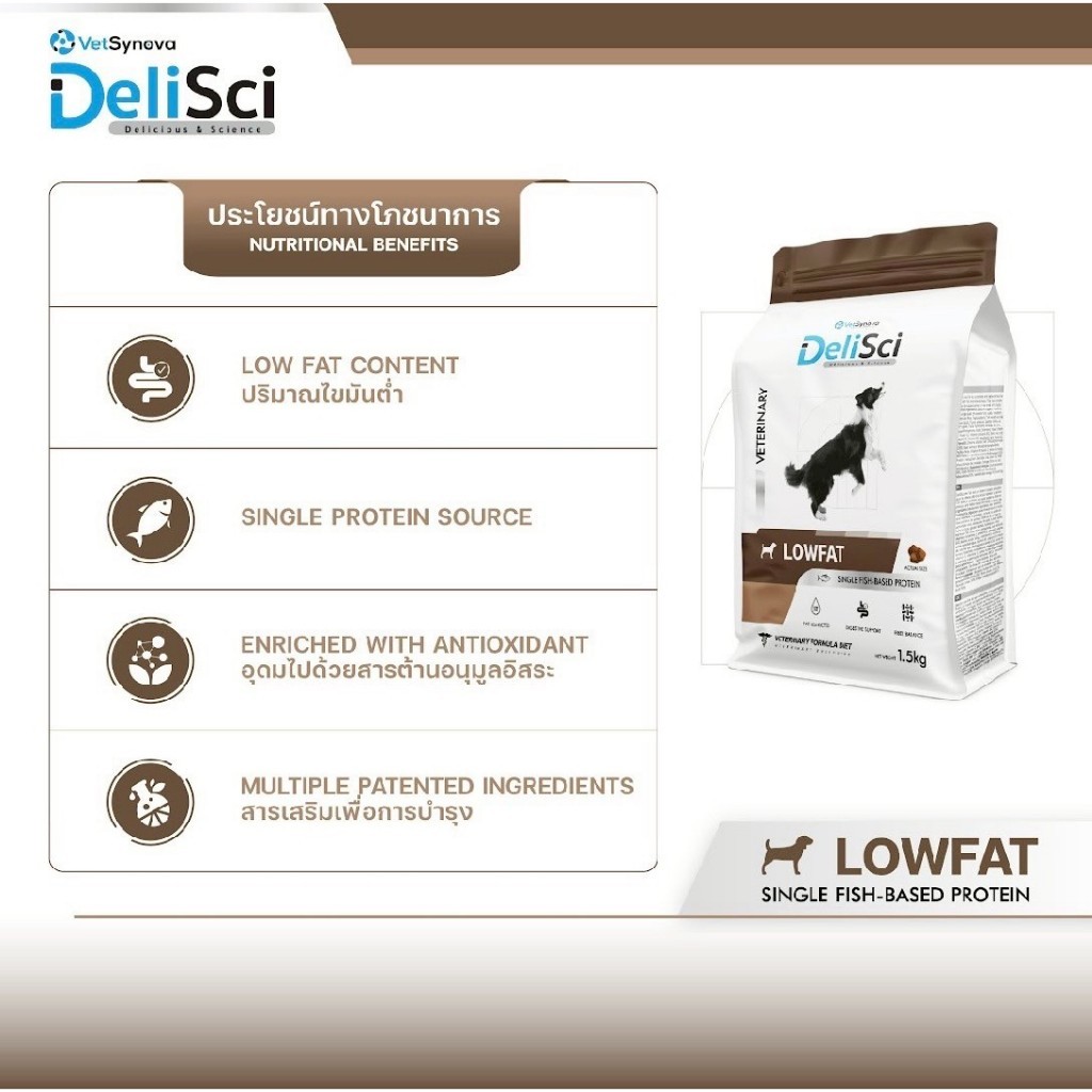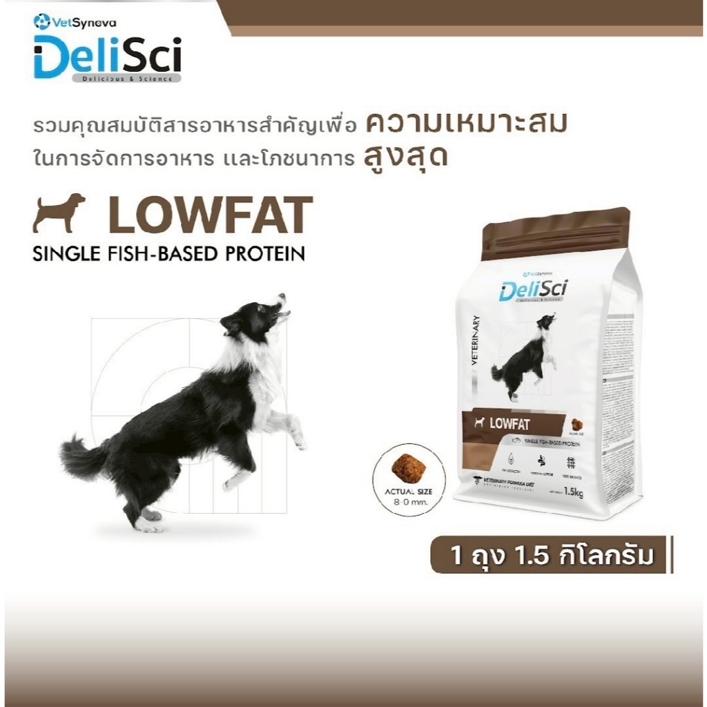 DeliSci Low Fat For Dog อาหารสุนัข ฟื้นฟูสัตว์ป่วย ให้พลังงานไขมันต่ำ ดูแลตับอ่อน ขนาด 1.5 กิโลกรัม