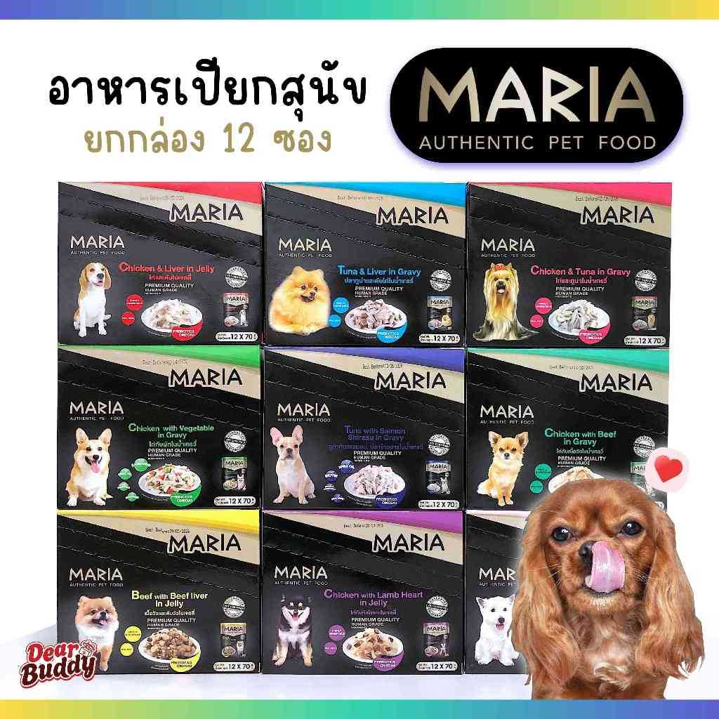 อาหารสุนัข Maria ยกกล่อง 12 ซอง (มีสูตรแพ้ไก่) คัดสรรวัตถุดิบระดับ HUMAN GRADE ได้รสเนื้อชิ้นๆ เต็มคำ