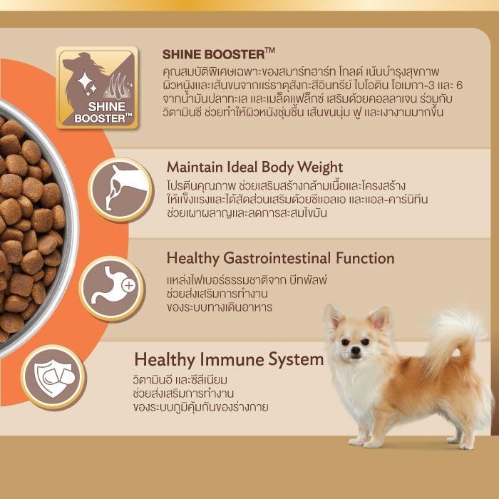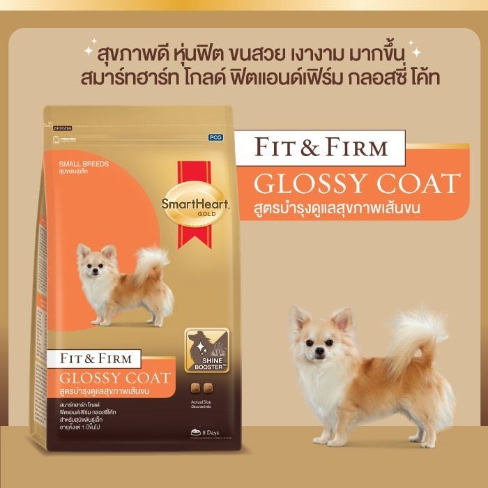 สินค้า : อาหารสุนัข Smartheart Gold สูตร Fit and Firm GROSSY COAT สำหรับสุนัขพันธุ์ Toy และสุนัขพันธุ์เล็ก ดูแลขน