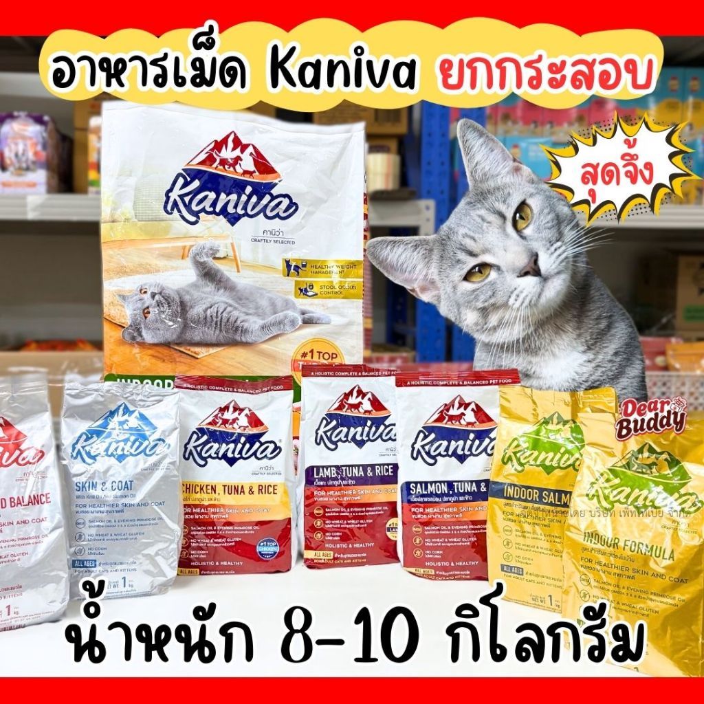 อาหารเม็ดสำหรับแมวทุกช่วงวัย Kaniva กระสอบ 8-10 KG. อาหารแมว เน้นตัวโต บำรุงผิวหนังและขน