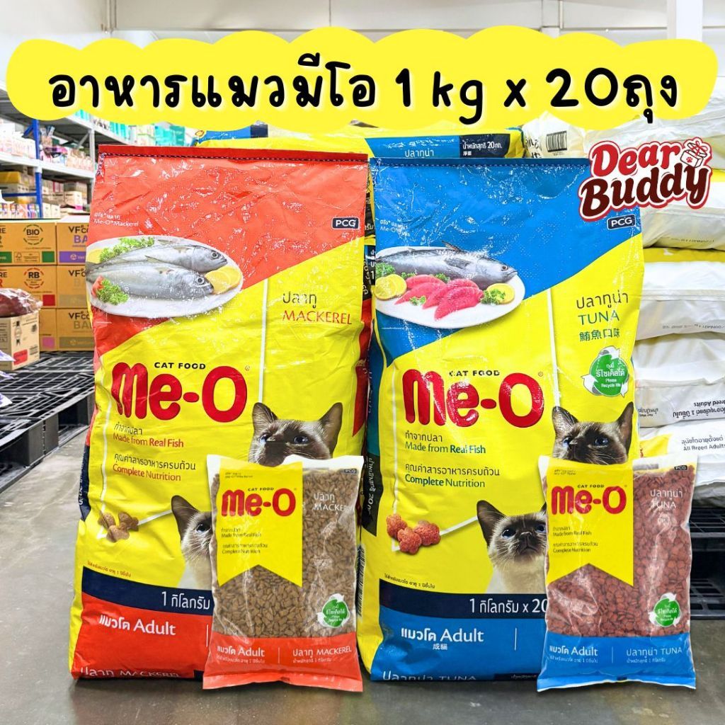 อาหารแมว Me-o กระสอบ 20 กิโลกรัม ด้านในเป็นถุงย่อย 1 กิโลกรัม มีโอ อาหารเม็ดสำหรับน้องแมว อาหารเม็ดสำหรับแมวโต