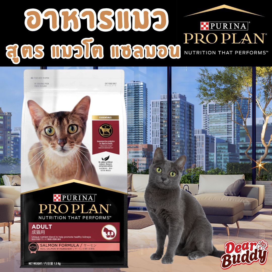(ลดราคา 50% Short Expire 2026-04-30) อาหารแมว Purina PRO PLAN® 1.5 กก. สูตร แมวโต สูตรปลาแซลมอน Adult Salmon