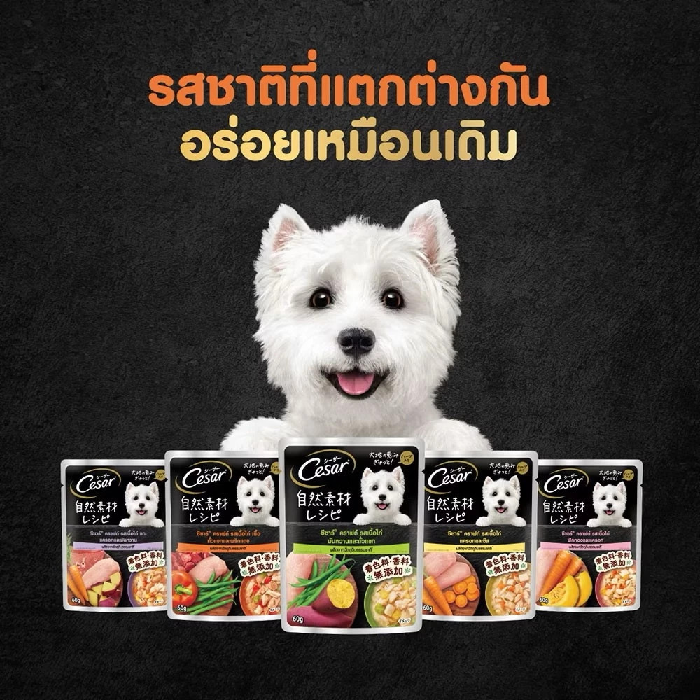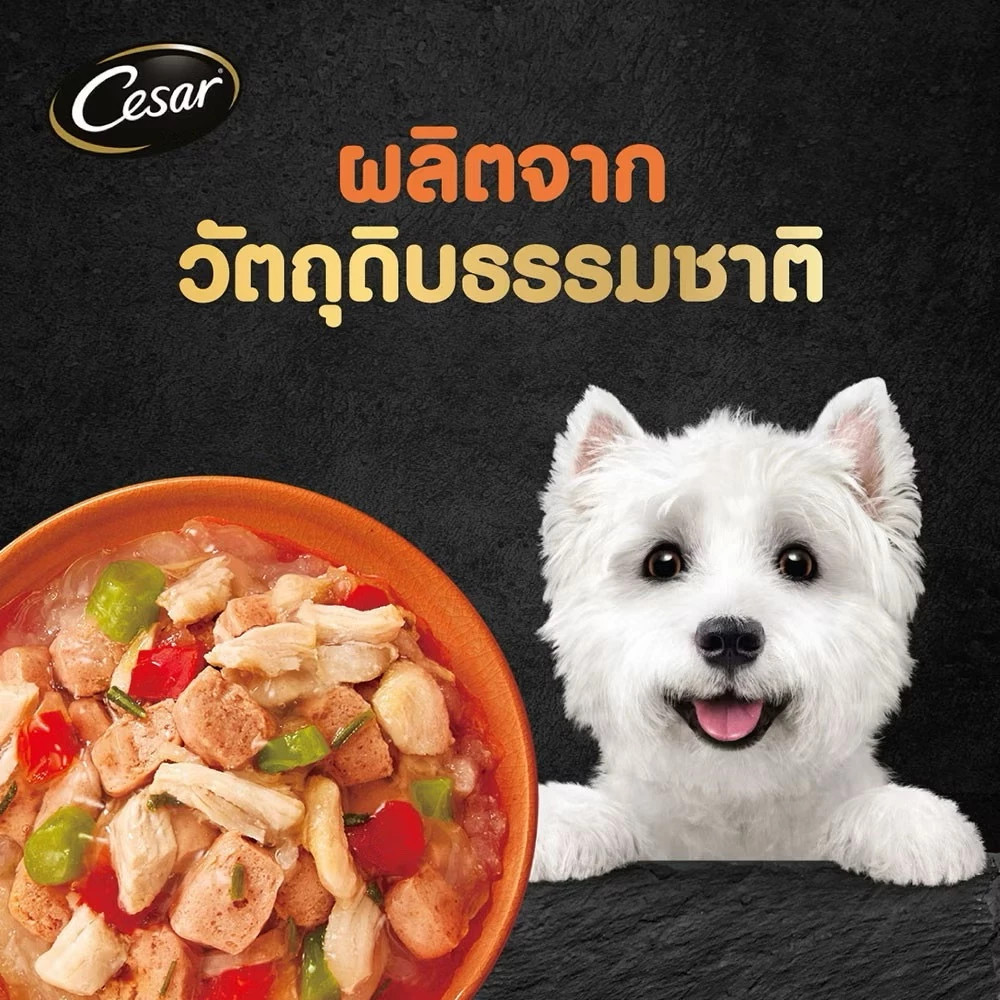 เนื้อสัตว์เป็นส่วนผสมหลัก: ทุกสูตรของ CESAR® ผลิตจากเนื้อสัตว์คุณภาพสูง ให้รสชาติที่เข้มข้นและอร่อย