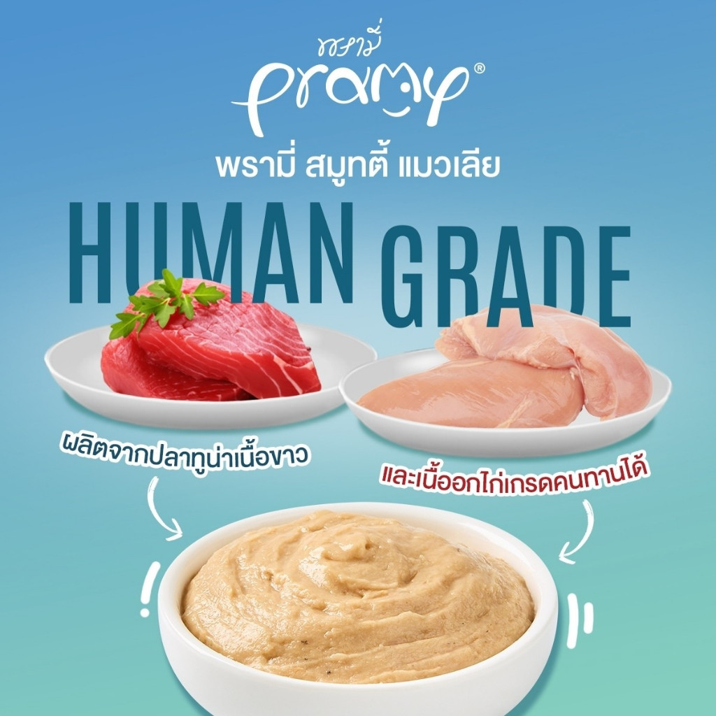 ยกระดับสุขภาพน้องแมวด้วยวิตามินแมวเลีย Pramy สุดพิเศษ! สูตรเฉพาะของเรา อัดแน่นด้วยคุณประโยชน์จาก ปลาทูน่าและเนื้อไก่เกรด Human Grade คุณภาพเยี่ยม พร้อมปริมาณน้ำสูงถึง 88% ช่วยดูแล สุขภาพทางเดินปัสสาวะ ครบครันด้วยสารอาหารสำคัญ เช่น FOS ช่วยเสริมสร้างระบบทางเดินอาหาร, ทอรีน บำรุงสายตาและหัวใจ, และ น้ำมันแซลมอน บำรุงขนและผิวหนัง มั่นใจได้ว่า Pramy ไม่มีธัญพืช (Grain Free), ไม่มี GMO, ไม่เติมเกลือและน้ำตาล เลือกสุขภาพดีให้น้องเหมียวได้ถึง 4 สูตร: