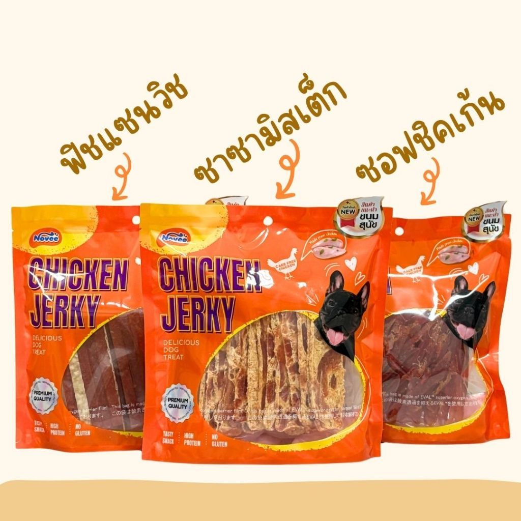 ใหม่ Novee Chicken Jerky สันในไก่อบแห้ง 400 กรัม ขนมสุนัข มีหลายแบบให้เลือกค่า