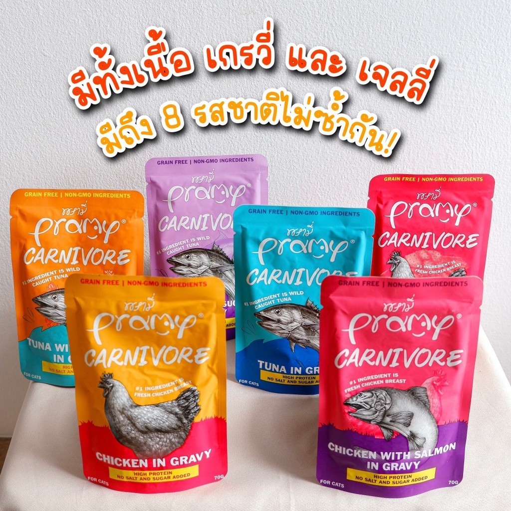 Pramy Carnivore พรามี่ คาร์นิวอร์ อาหารแมวเปียกแบบ High Protein โปรตีนสูง 11% เน้นเนื้อสัตว์แท้ ๆ