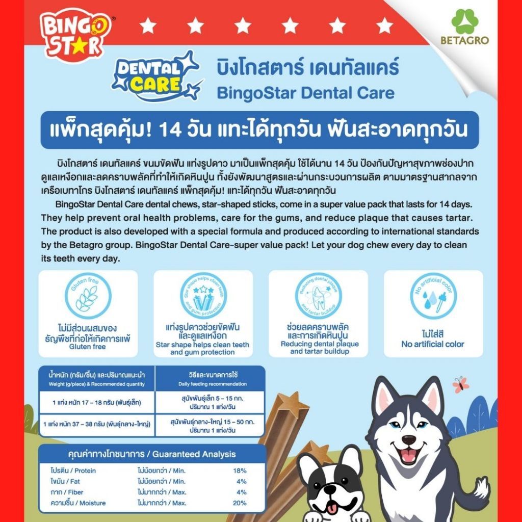 Bingo Star Dental care ขนมขัดฟัน น้ำหนัก 520 กรัม แพ็กสุดคุ้ม 14 วัน แทะได้ทุกวันไม่เบื่อ! ขนมขัดฟันสุนัข ขนมสุนัข