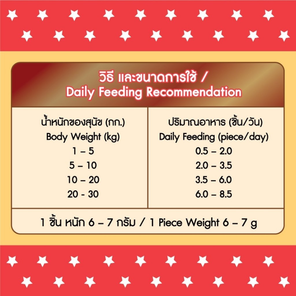เนื้อนุ่ม เคี้ยวง่าย เหมาะสำหรับสุนัขทุกสายพันธุ์ จะให้เป็นรางวัลระหว่างฝึก หรือให้เป็นของว่างก็ฟินสุดๆ