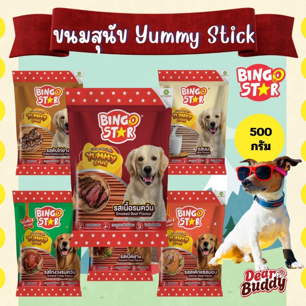 ![th-11134207-81ztf-me7ed1slzvnnbc.jpg Bingostar Yummy Stick (500 กรัม) ขนมสุนัข ขนมหมา แบบแท่ง [เลือกรสได้] บำรุงขน เสริมกระดูก - Image 1](https://www.dearbuddy.shop/wp-content/uploads/2026/01/th-11134207-81ztf-me7ed1slzvnnbc.jpg)
