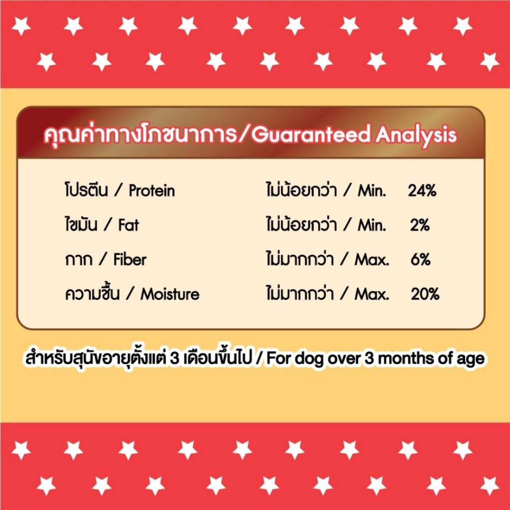 • โปรตีน: ไม่น้อยกว่า 24%