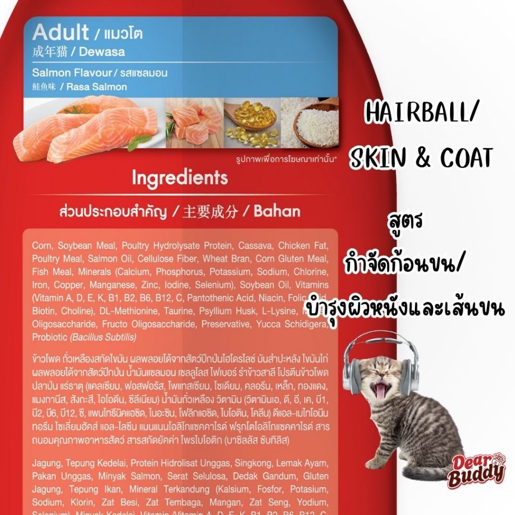 น้องแมวชอบเลียทำความสะอาดตัวเอง สูตรนี้มีใยอาหารสูง ช่วยในการขับถ่ายตามธรรมชาติ ลดการก่อตัวของก้อนขน พร้อมบำรุงผิวหนังและเส้นขนให้แข็งแรง เงางาม ลดการผลัดขน เพื่อสุขภาพขนและผิวที่ดีเยี่ยม