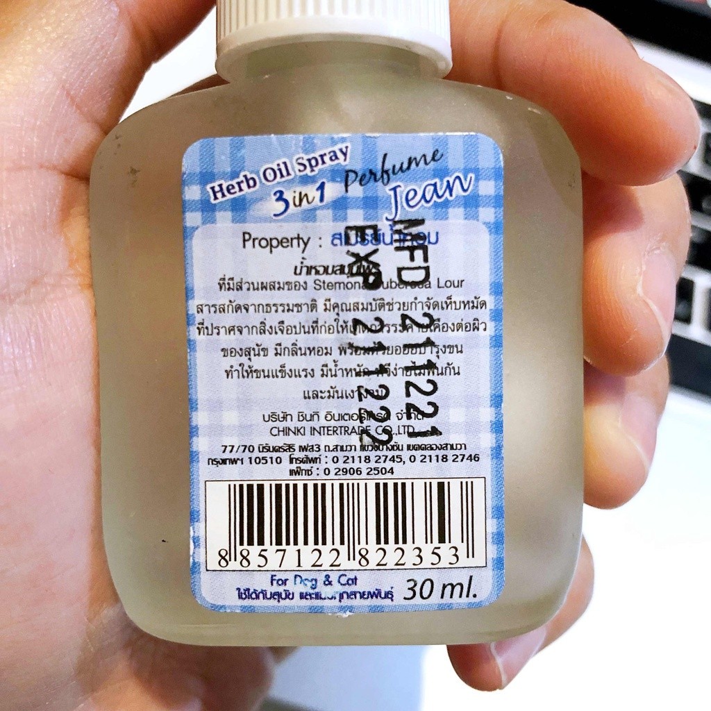 น้ำหอมสมุนไพร ที่มีส่วนผสมของ Stemona Tuberosa Lour สารสกัดจากธรรมชาติ มีคุณสมบัติช่วยกำจัดเห็บหมัดที่ปราศจากสิ่งเจือปนที่ก่อให้เกิดการระคายเคืองผิวของสุนัขและแมว มีกลิ่นหอมพร้อมออยบำรุงขน ทำให้ขนแข็งแรง มีน้ำหนัก หวีง่ายไม่พันกัน