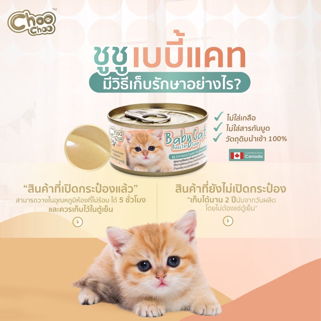 ChooChoo Baby Cat ชูชู อาหารเสริมซุปบำรุงสูตรลูกแมว1กระป๋อง 80 กรัม อาหารลูกแมว นมลูกแมว (เหมาะกับลูกแมว1-3เดือน)