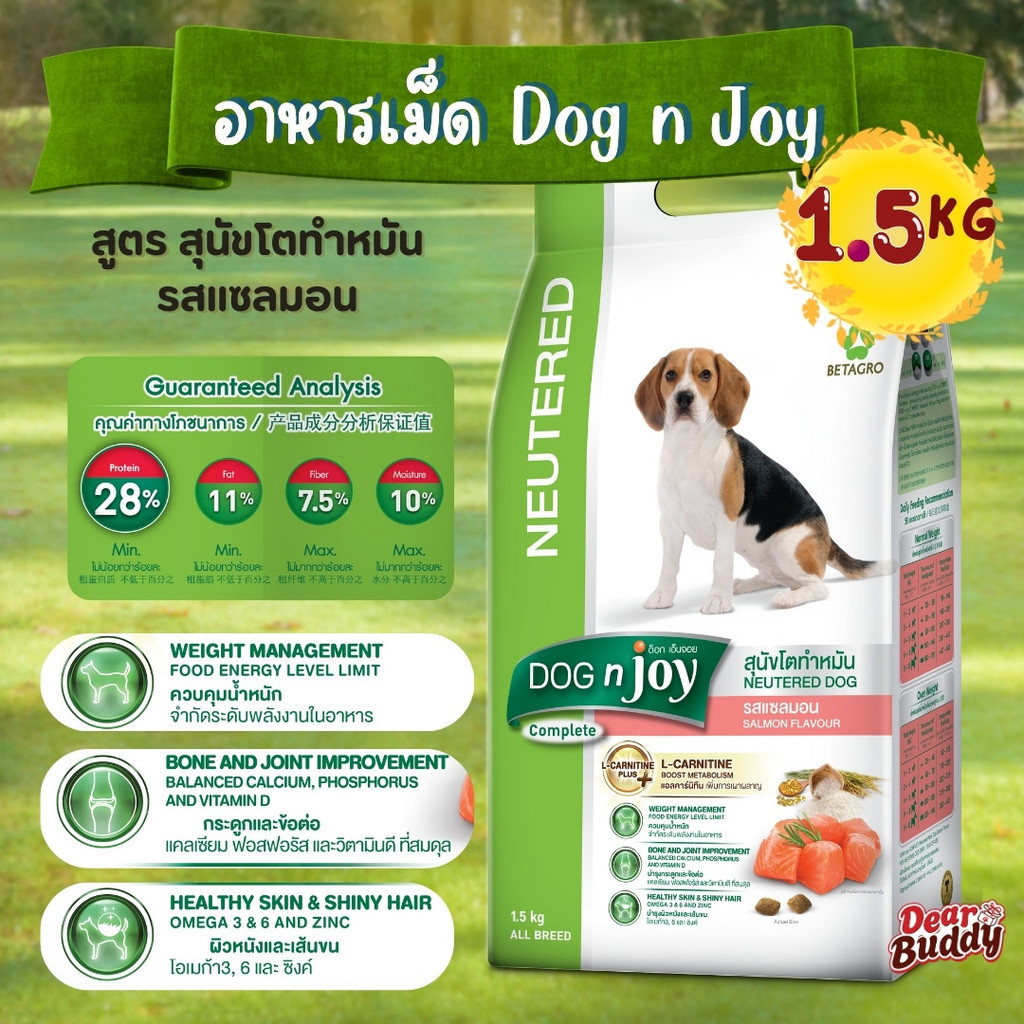 Dog n Joy อาหารสุนัข สูตรสุนัขทำหมัน รสแซลมอน 1.5kg โปรตีนสูง ช่วยคุมน้ำหนัก เผาผลาญดี บำรุงขน