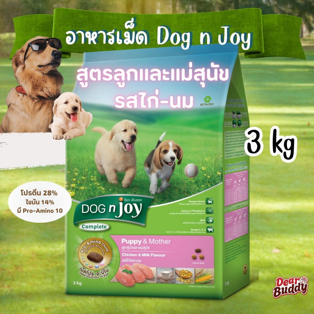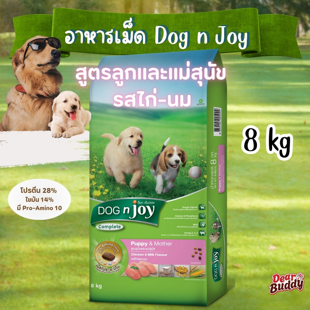 DOG n joy COMPLETE สูตรลูกและแม่สุนัข รสไก่และนม อาหารสุนัข ด็อก เอ็นจอย คอมพลีท ขนาด 1.5kg, 3kg, 8kg