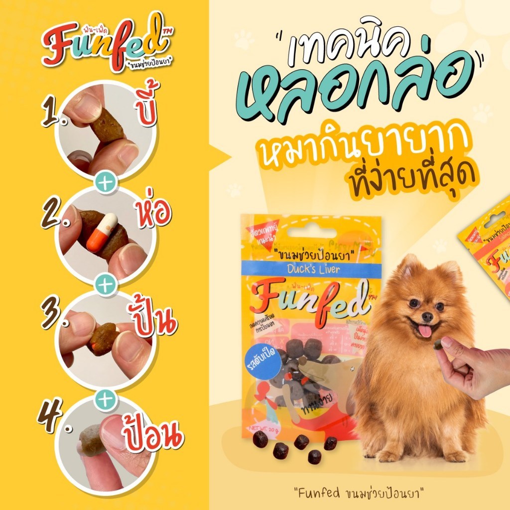 ใหม่ 🔥 FunFeD ฟัน-เฟ็ด ขนมช่วยป้อนยา ตัวช่วยสำหรับป้อนยาสัตว์เลี้ยง สำหรับสุนัข แมว ไม่เติมเกลือ ขนาด 20 กรัม