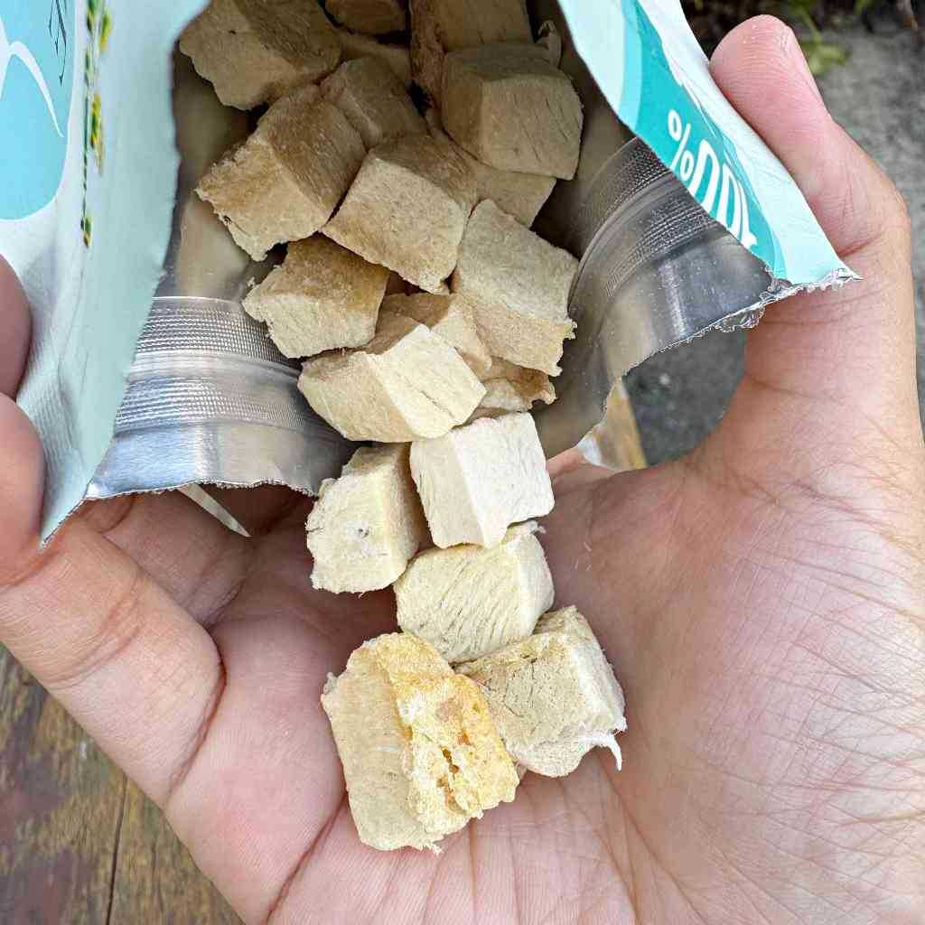 เนื้อไก่ฟรีซดราย ผลิตจากเนื้อไก่ 100% ไม่มีส่วนผสมของผัก