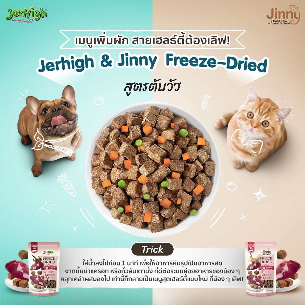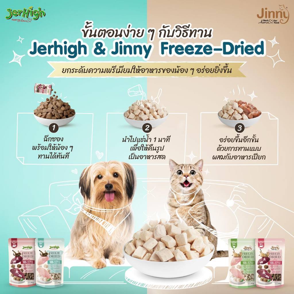 Jerhigh Freeze Dried ใช้วัตถุพรีเมียม Human Grade แบบเดียวกับที่มนุษย์ทาน เพราะเรามองเห็นถึงความสำคัญของเรื่องของสุขภาพสัตว์เลี้ยง จึงมีการผลิตโดยใช้วัตถุดิบที่เป็นเนื้อแท้เน้นๆ 100% ซึ่งเป็นสิ่งที่ดีสำหรับสุขภาพของสัตว์เลี้ยง