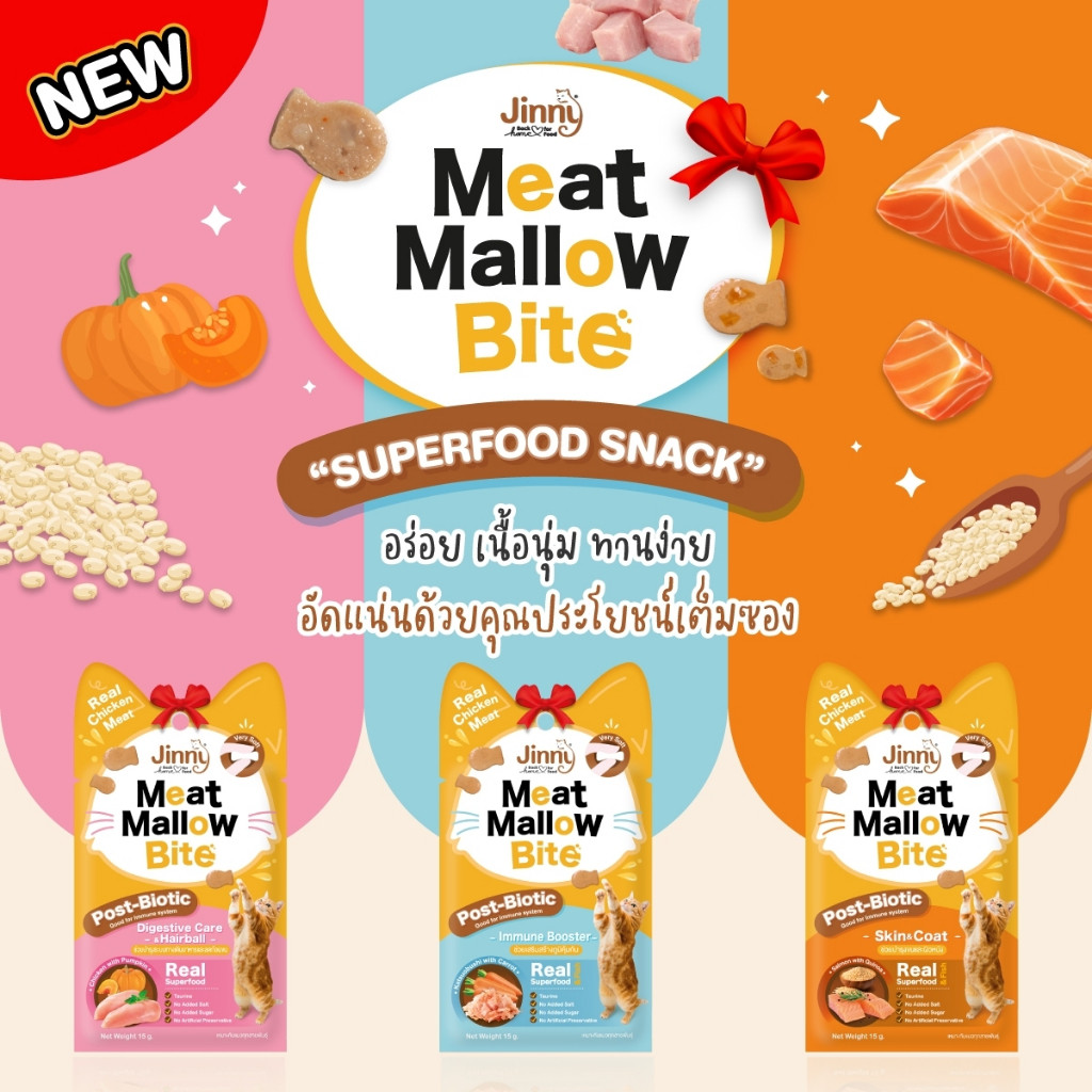 ใหม่!..ขนมเจ้าเมี๊ยวชิ้นนู๊มนุ่ม JINNY “Meat Mallow Bite”